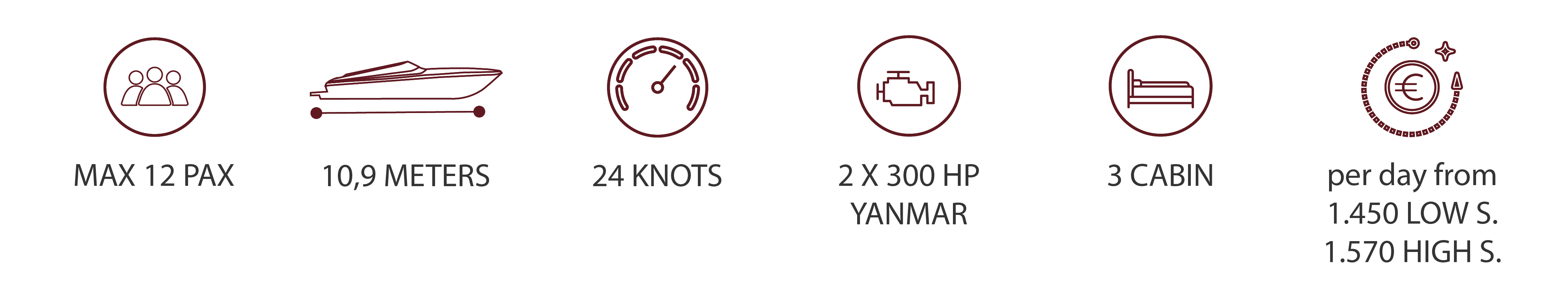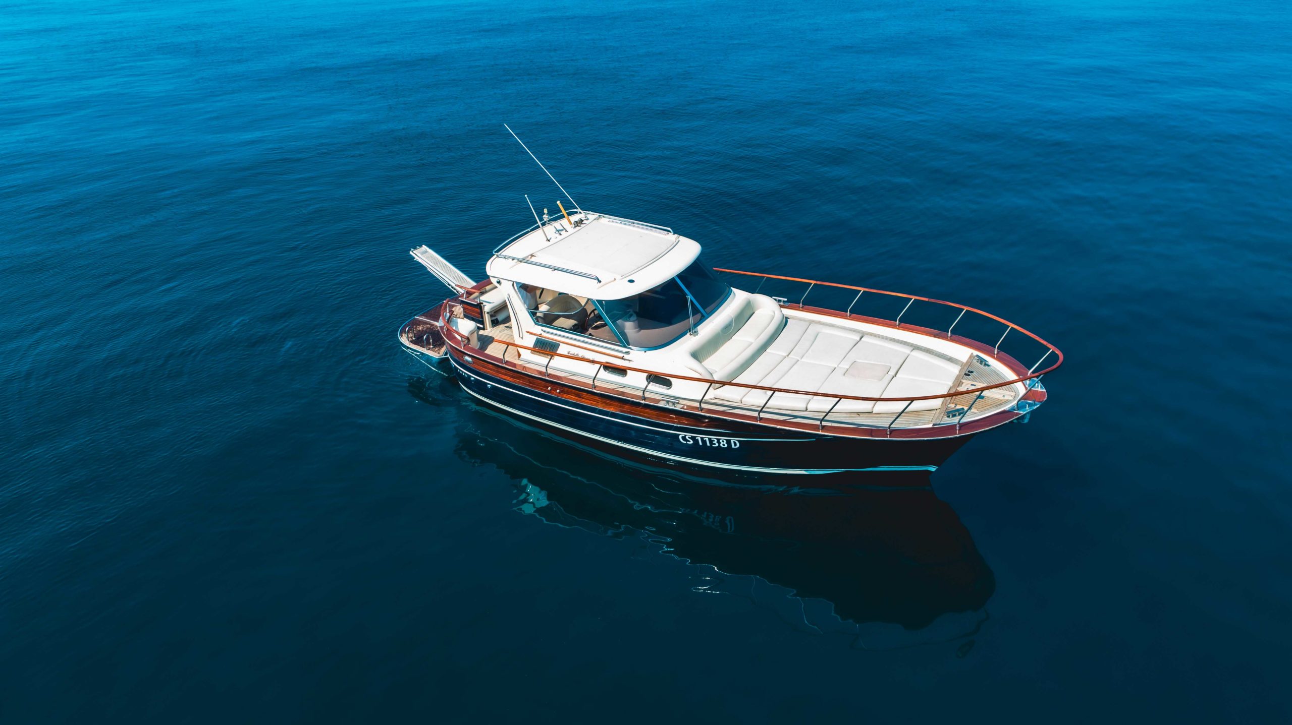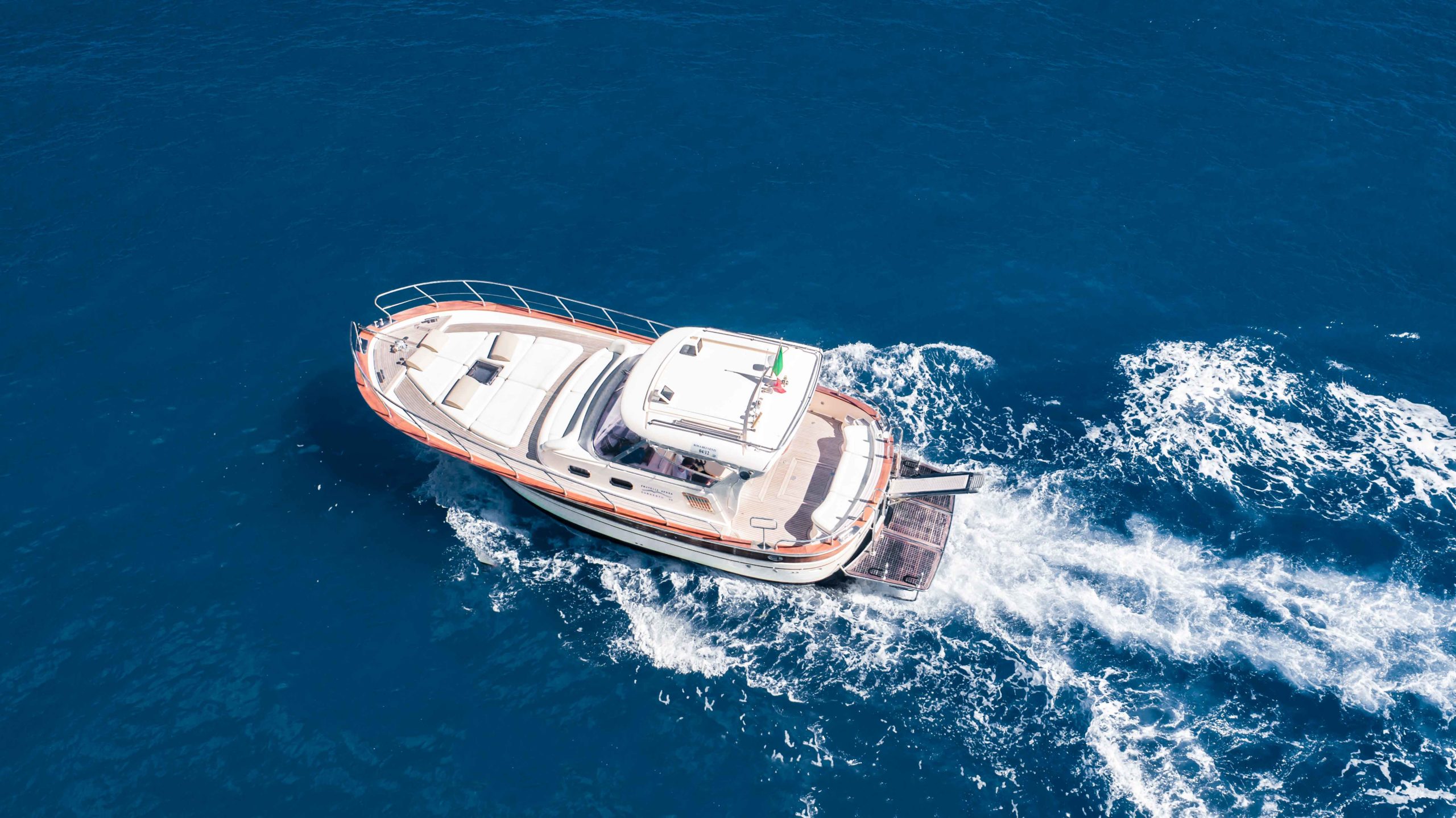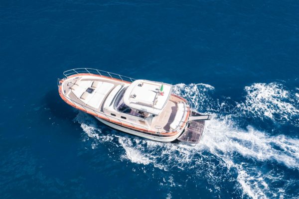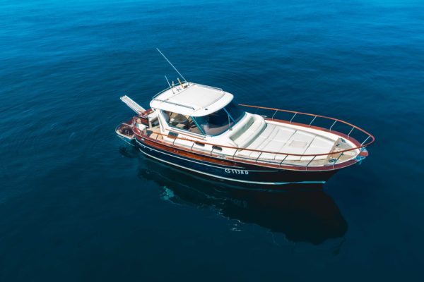 Nacido en 1984, es el modelo líder del astillero de Fratelli Aprea: moderno, original y extremadamente espacioso. Diseñado con grandes soluciones de comodidad, como el sillón y el sofá reclinable en la proa, es perfecto para grupos de hasta 12 personas. El barco también incluye: cubierta, cabina principal, cabina de tripulación, comedor, wc, cocina, ducha fría y caliente, equipo de música, televisión, aire acondicionado, nevera interior, nevera al aire libre.