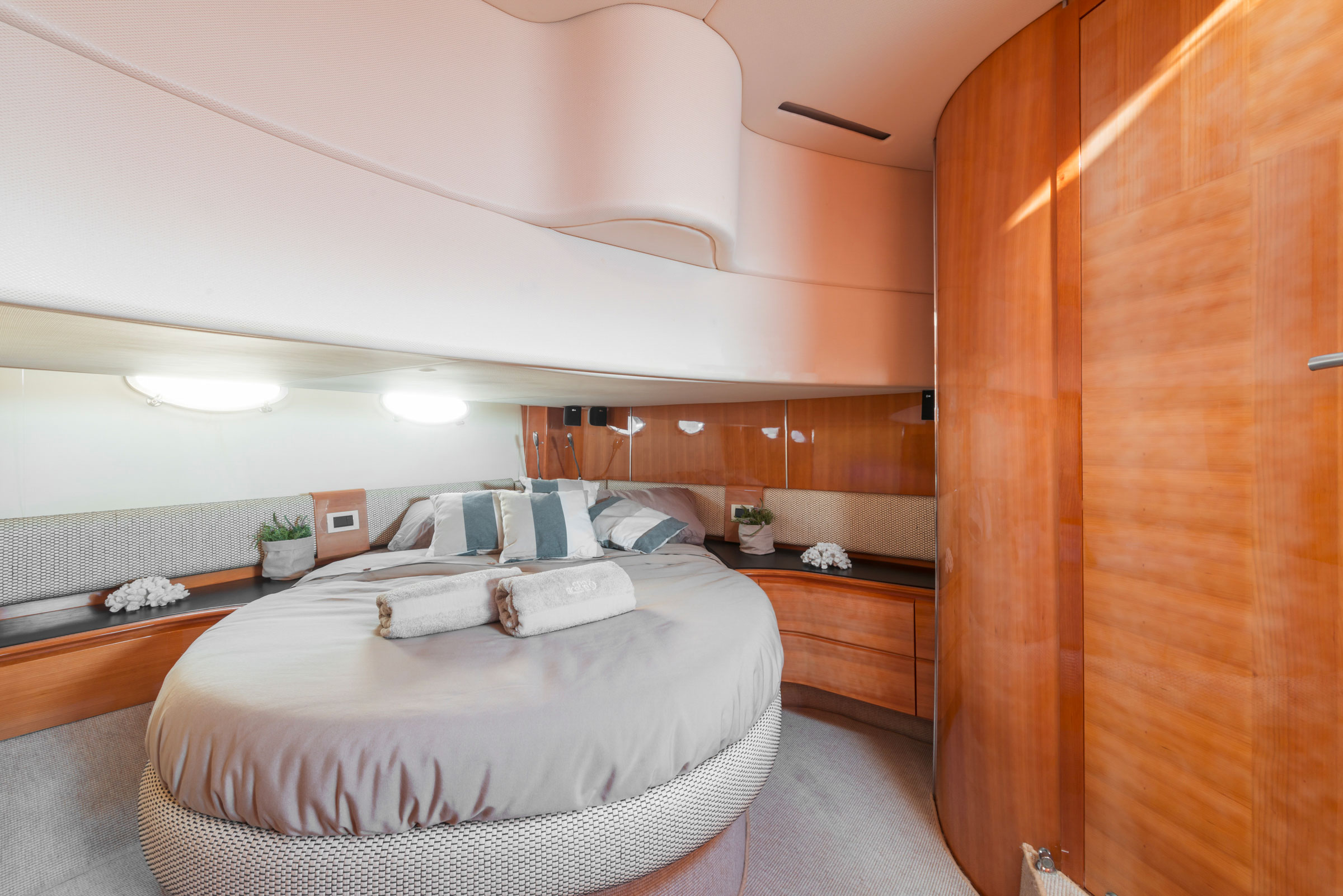 Azimut Atlantis 55 HT, class 16 meters is a beautiful and comfortable boat. Provided with large sundeck, both aft and bow and all the necessary comfort to make your stay pleasant. It has air conditioning in all cabins, equipped kitchen, refrigerator, barbecue, digital tv, wifi, beach towels, large living area both outside and below deck, indipendent electrical generator and all better safety features. It is available for excursions, long or short cruises,events, water transfers and overnight stays in the seaport. Launched in 2009  – Azimut Atlantis 55 HT, can accommodate up to 4 people for overnight stays and up to 12 passengers for daily excursions.